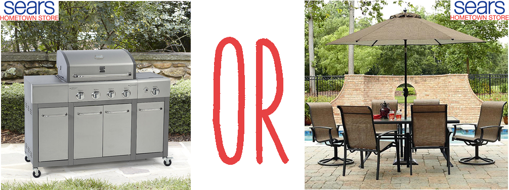 4-Burner Grill or 7-Piece Patio Set Raffle: Winner's Choice of NEW Kenmore 4-Burner Stainless Steel Gas Grill with Side Burner & Storage ($499 Retail Value) OR NEW Garden Oasis Harrison 7-Piece Patio Set and Long Beach Umbrella (includes tempered glass table, 4 stationary chairs, 2 swivel chairs, and 9' umbrella; $499.98 Retail Value).
