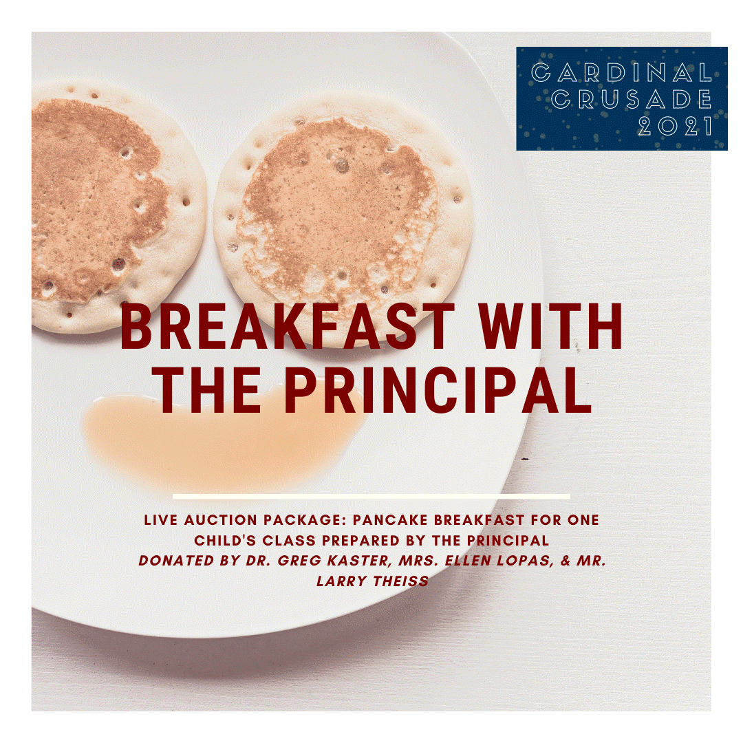 Breakfast with the Principal Donated by Dr. Greg Kaster, Mrs. Ellen Lopas, & Mr. Larry Theiss