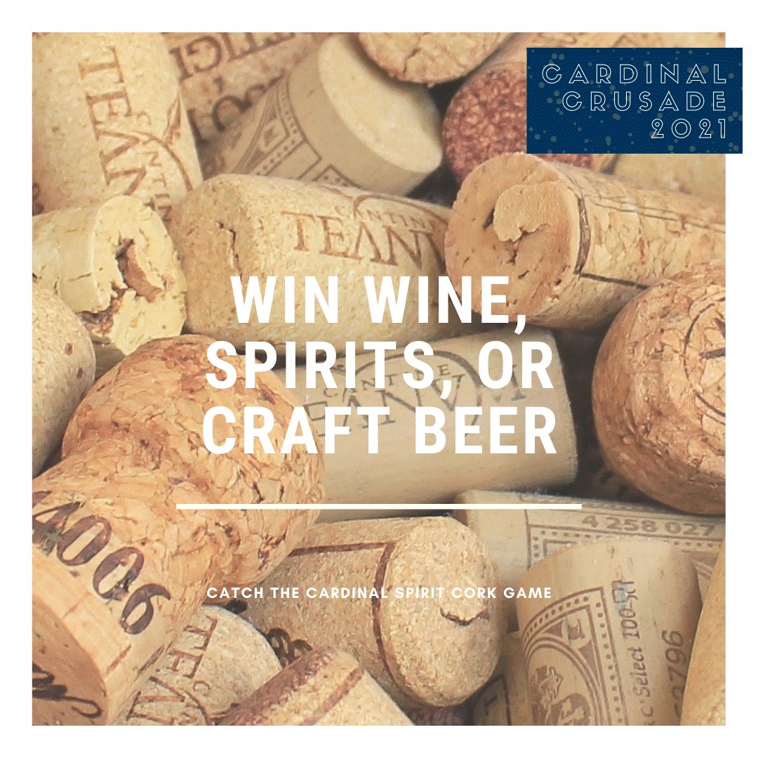 Catch the Cardinal Spirit Cork Game: Numbered corks are just $20 each and everyone’s a winner of a mystery bottle of wine or spirits or maybe even a 6 pack of craft beer! But you better hurry, the corks go fast. Buy your virtual cork online before they're gone. Spirits will be available for pick up the week after the event where you’ll find out if you’re the lucky winner of top shelf booze or two buck chuck.